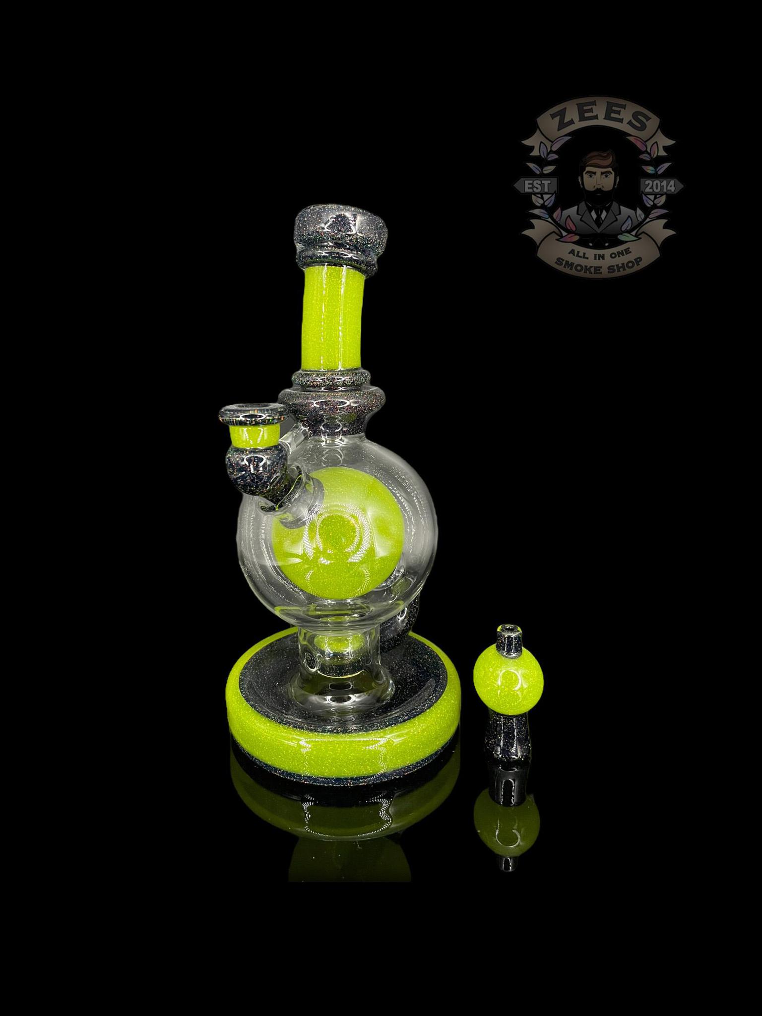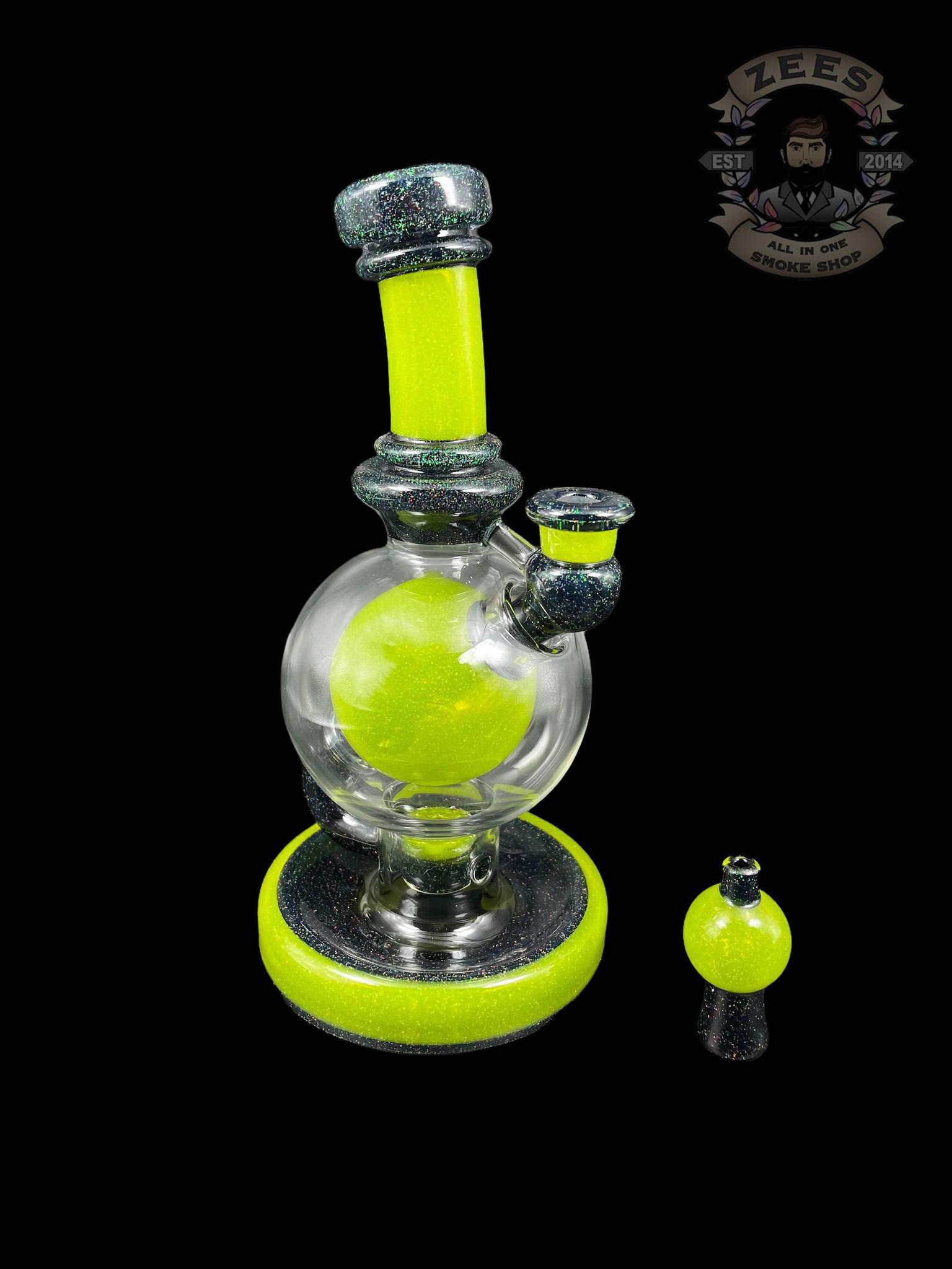 BRENT 503: 8″ LIME DROP BLACK CRUSHED OPAL BALL RIG W/ MATCHING CAP