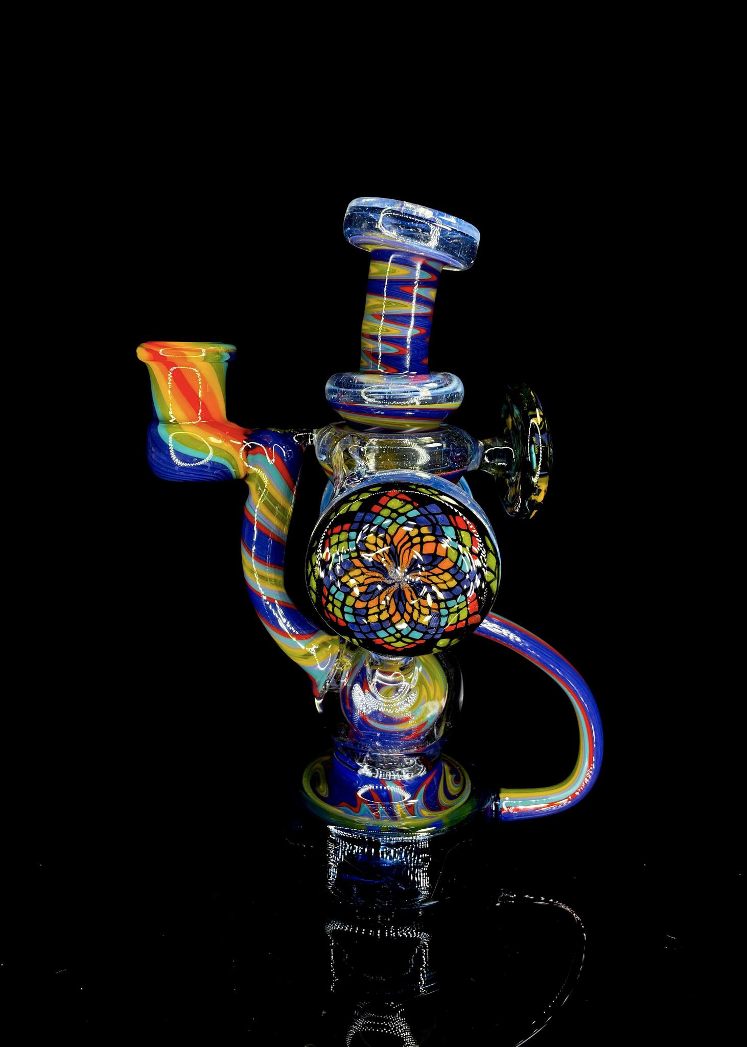 CLARKIE CLARK GLASS: FULLY WORKED DUAL DISK UPTAKE RECYCLER #5