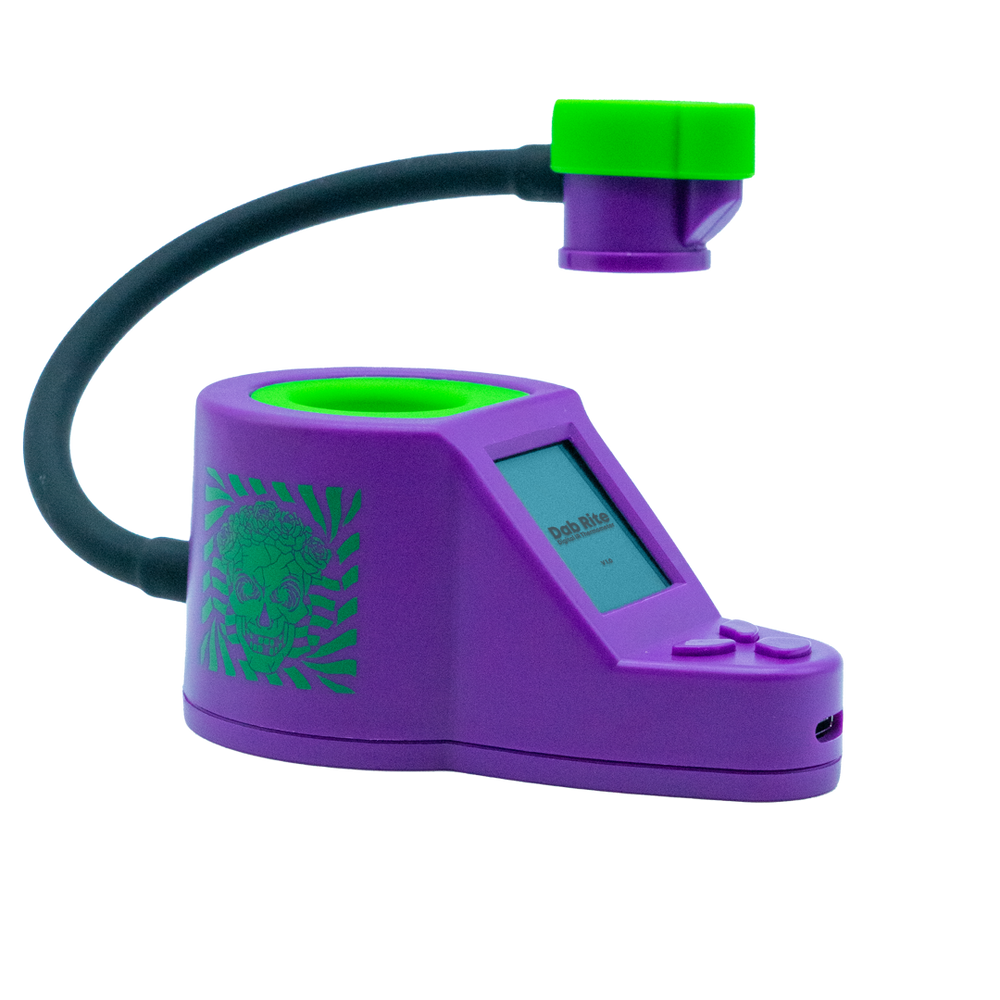 The Dab Rite Digital Infrared Thermometer illustrates that the best way to an exact temperature is to stay flexible! This IR thermometer, specifically designed with the dabber in mind, allows you to fix the sensor to any angle you want within a generous 7″ reach, accommodating pretty much any setup you can throw at it. Heady rigs, extended bangers, you name it… this thermometer can reach it! Set your preferred temperature and the Dab Rite will use both light and sound to alert you when it’s been reached, though you can turn either of these features off to tailor to your choice. The emissivity setting works perfectly with clear quartz and opaque bottom bangers alike. A safer LED light is used as opposed to lasers to get precision temperature readings without putting you in potential harm. It even boasts an auto shut off feature after 5 minutes of inactivity.