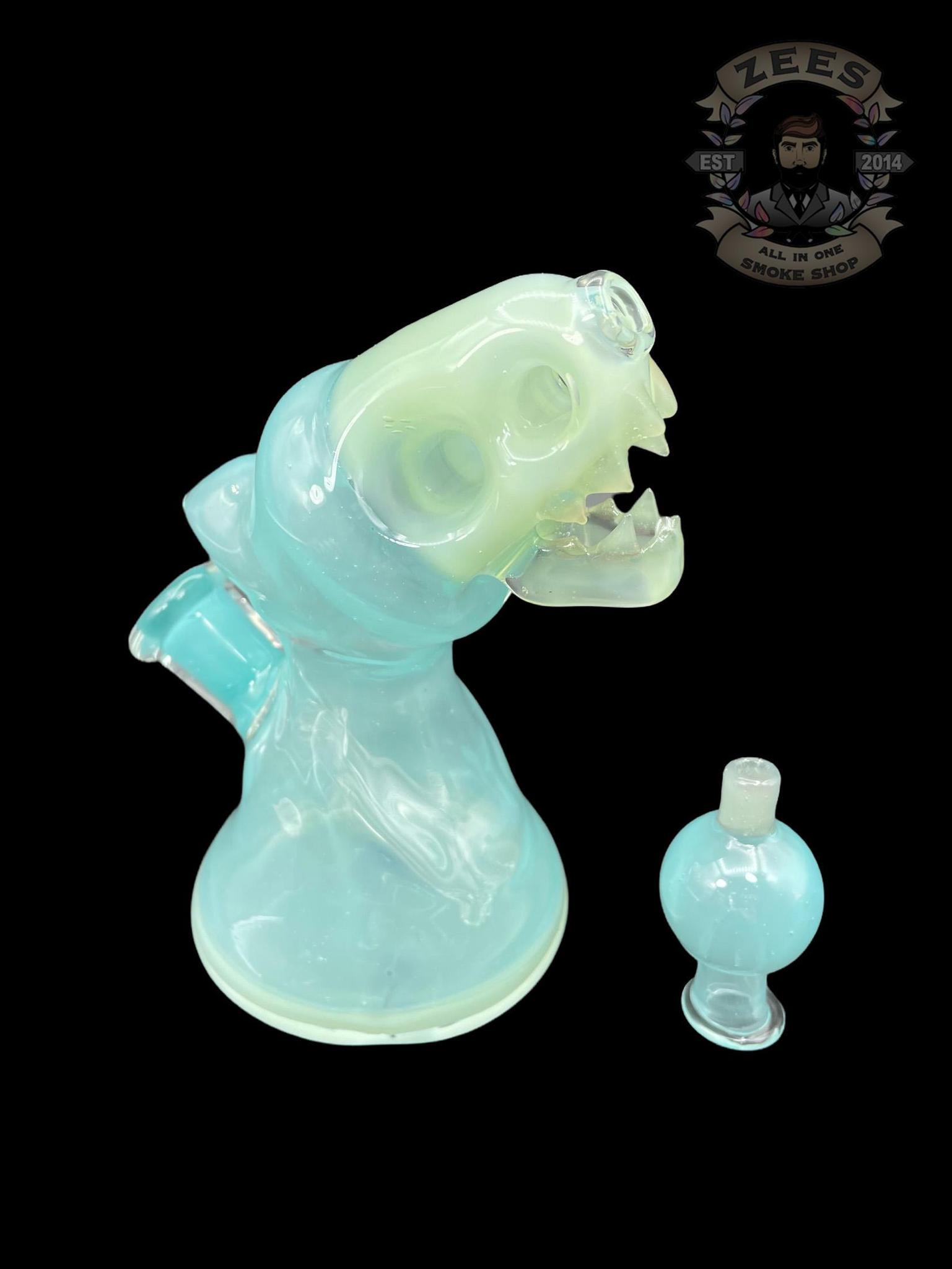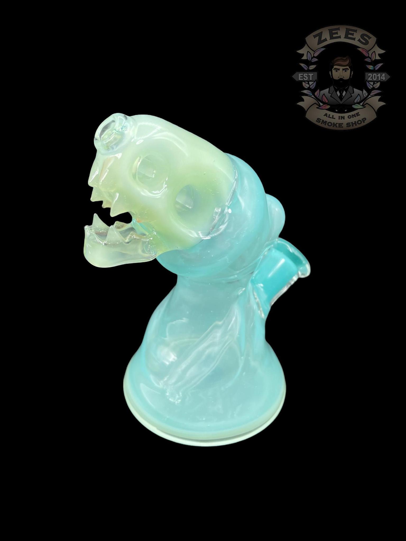 ENUFF GLASS: MILKY GREEN AND LIGHT BLUE HOODED JAMMER RIG