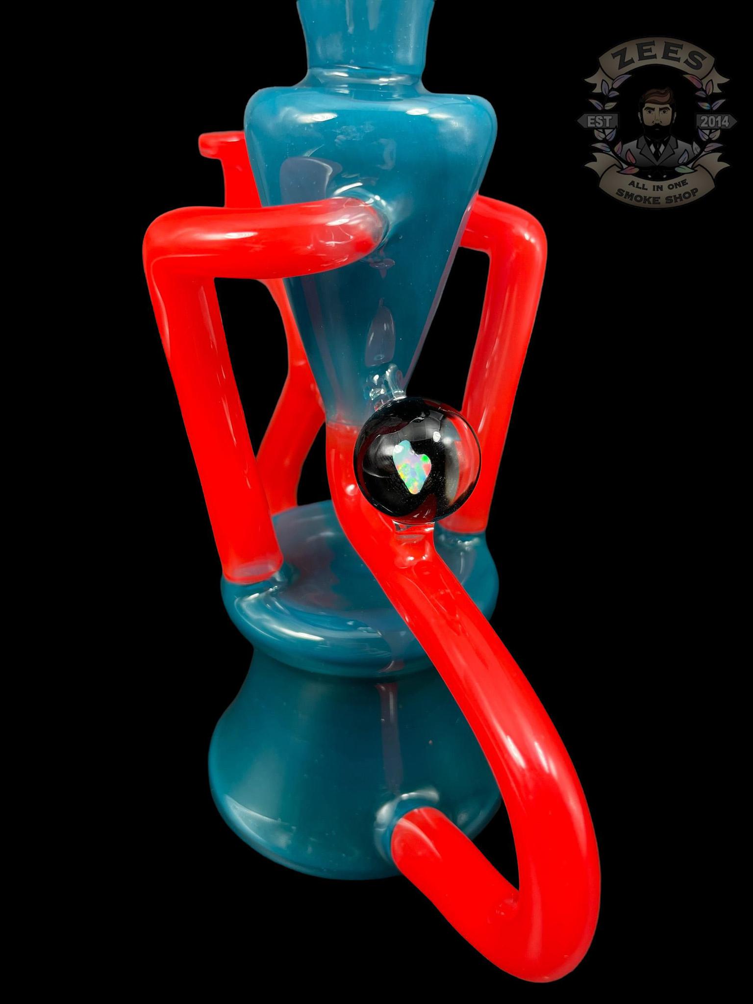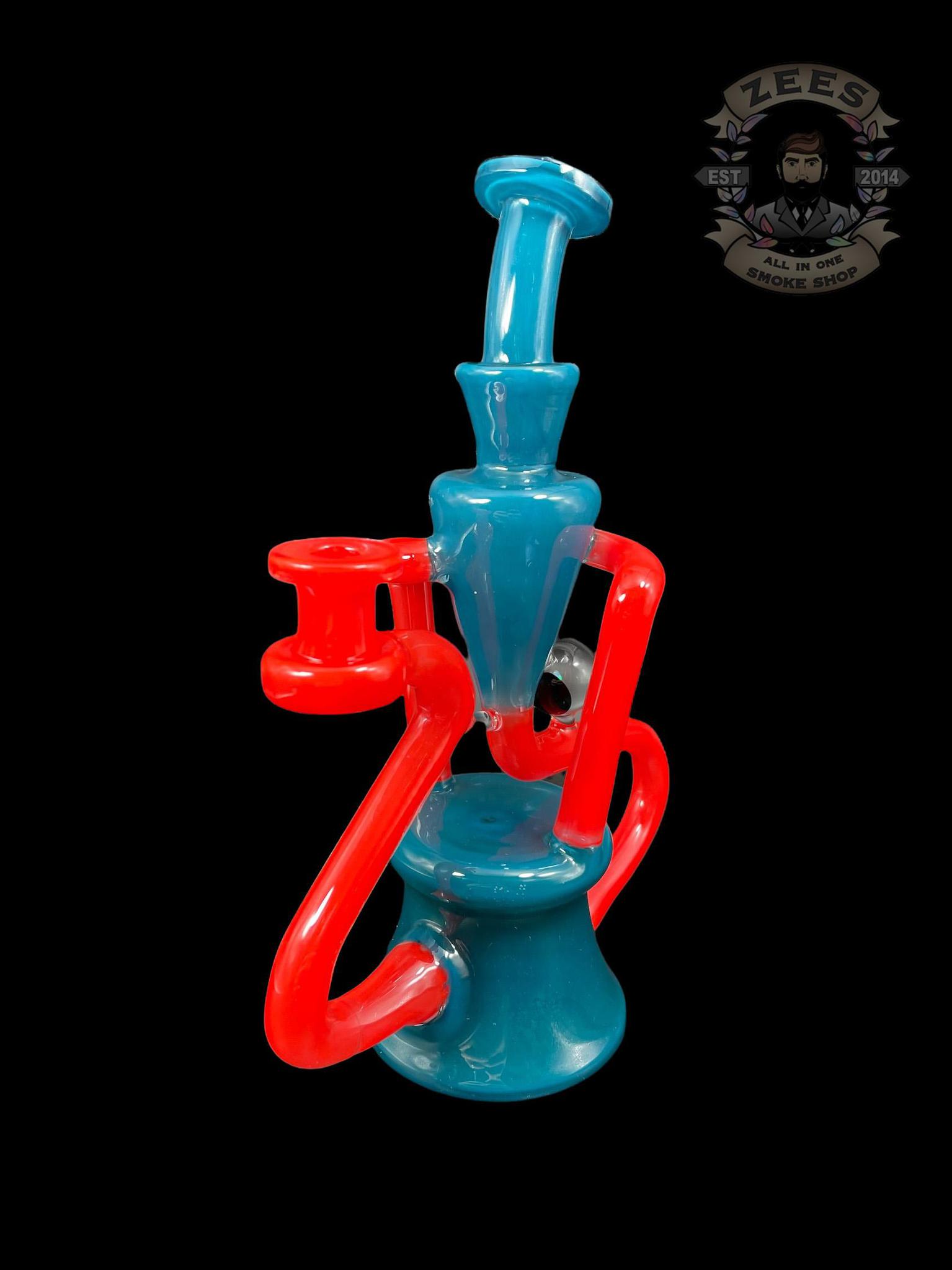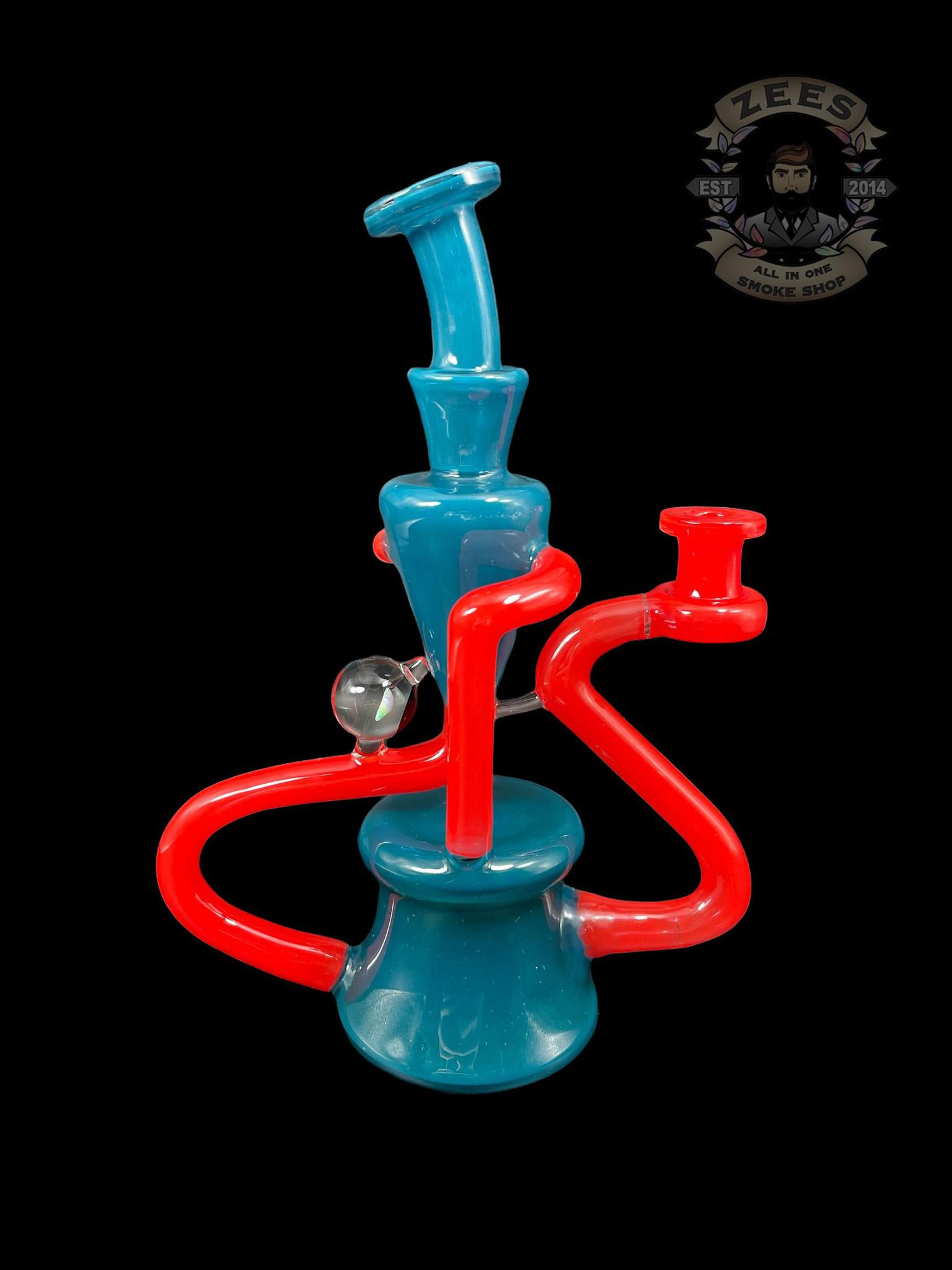 EX NIHILO GLASS: BLUE SPRUCE x CHERRY DUAL UPTAKE FLOATER RECYCLER
