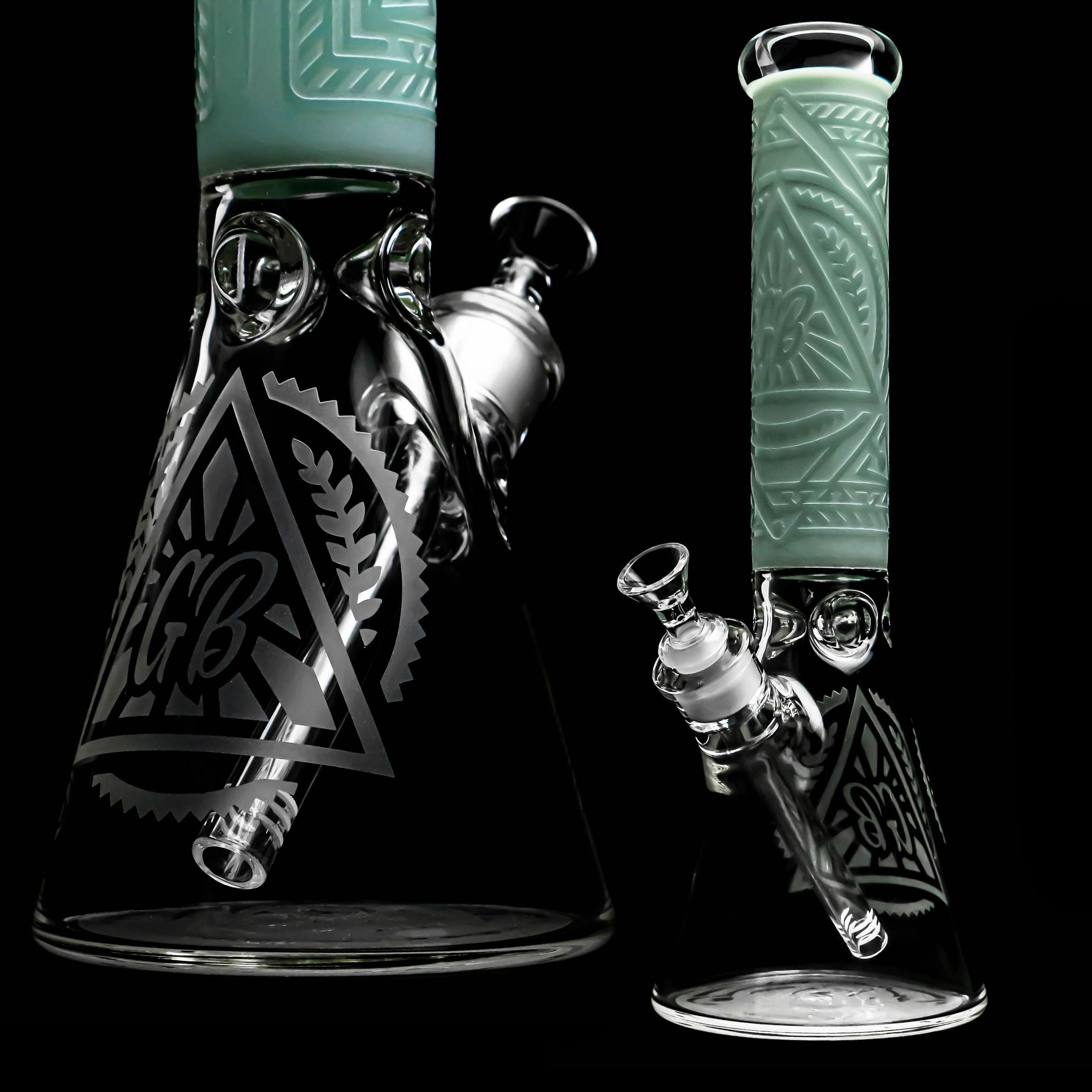 Featuring a sleek, linear beaker build and a three hole pinch ice catcher. The GB18 Striped Section comes with our classic “GB” and Bear logos. The Striped Section is a heavy hitter for those of you with deep lungs. 18″ beaker with a rich color accented bottom base, mid-section, and lip wrap.