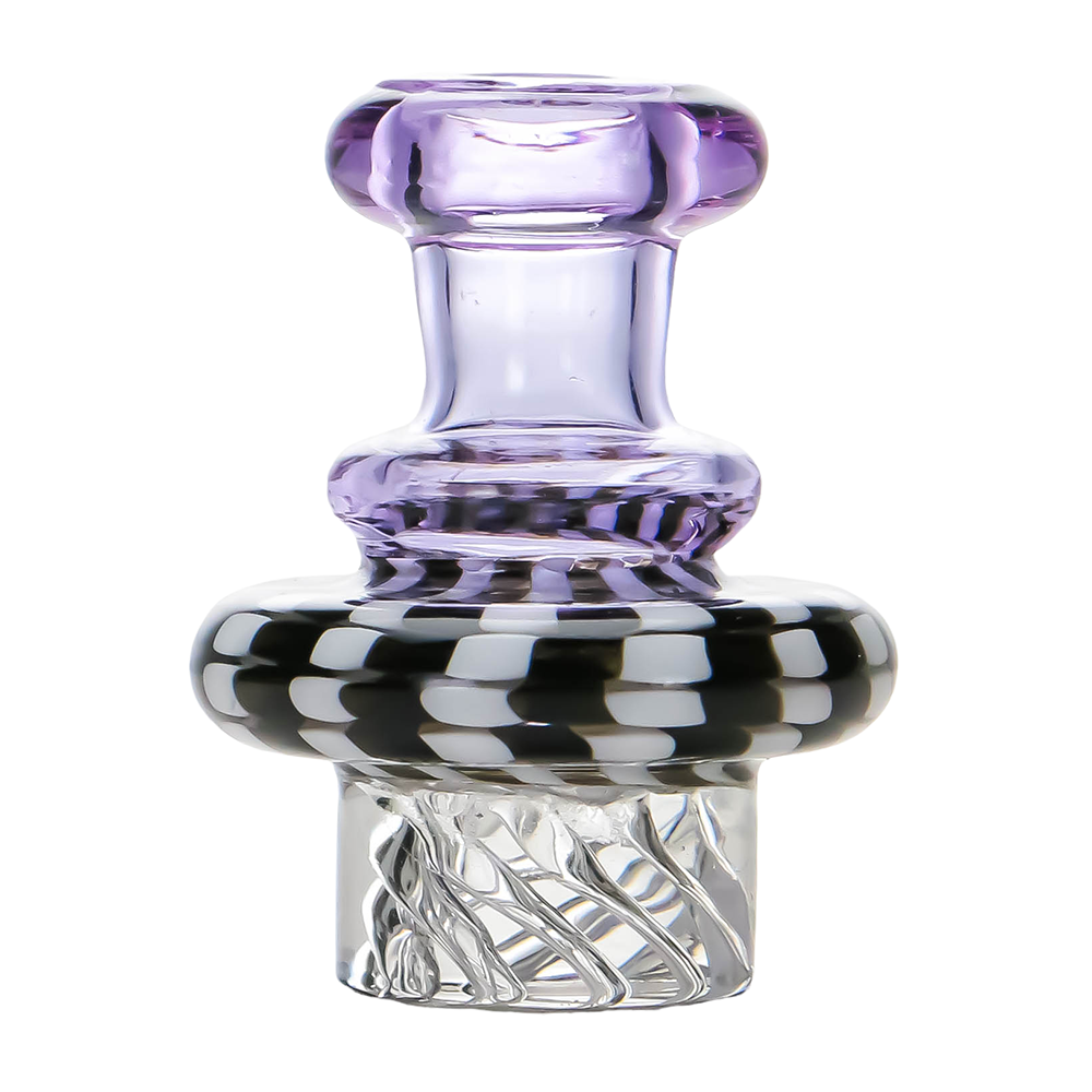 Vortex style cap with a colored striped design and a color accented handle. Multiple angled holes direct airflow for max spinning action. Comes in multiple color combos to coordinate with your setup. Fits 25mm.
