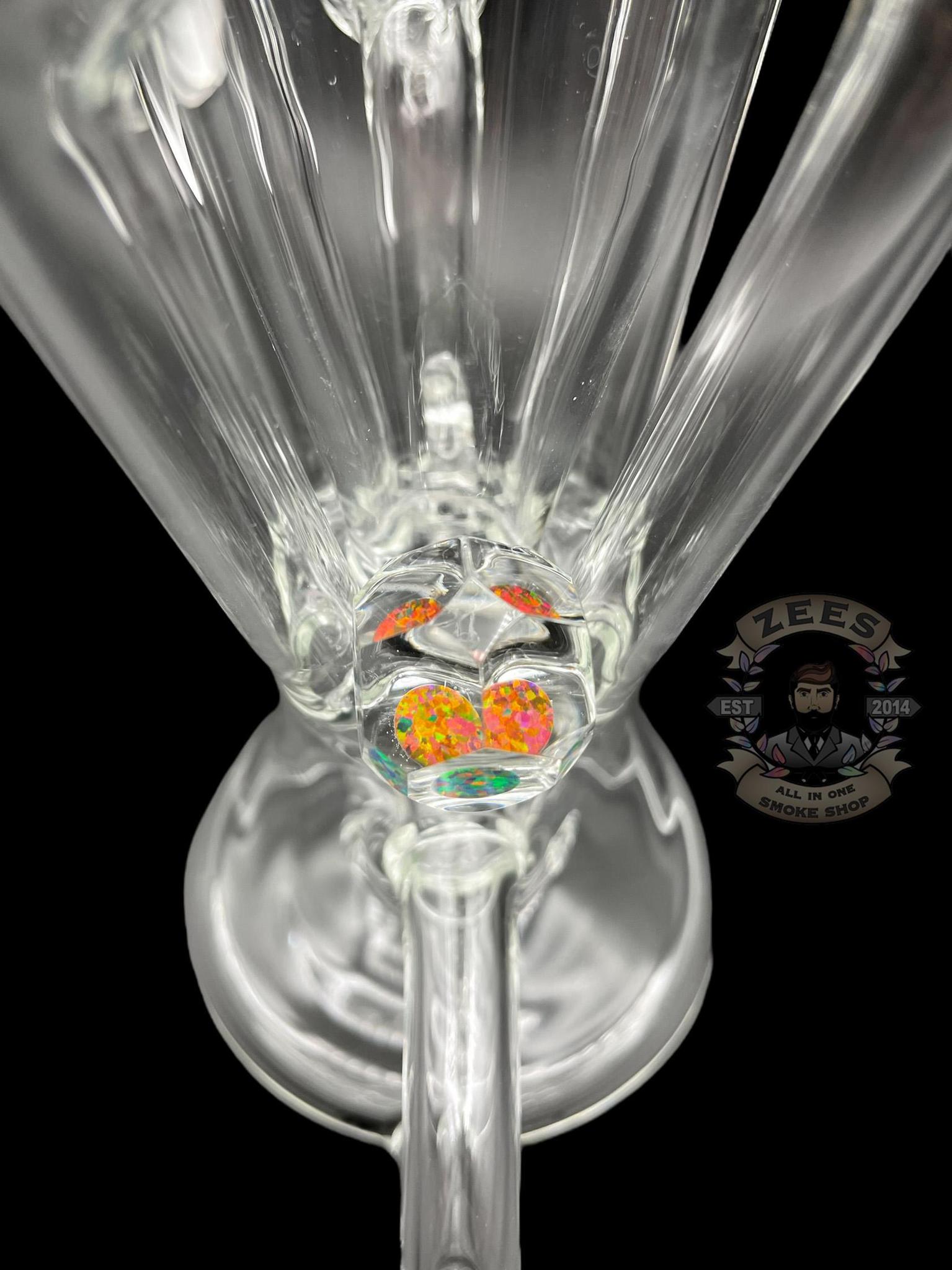 HEART AND MIND GLASS: CLEAR FACETED ENCASED OPAL QUAD RECYCLER