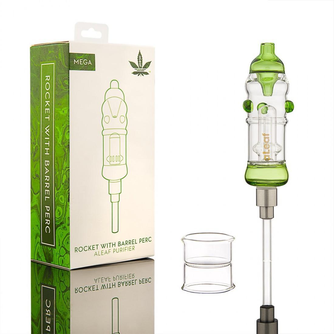 Try our Mega purifier for a more refined pallet. Designed with a barrel perc this is sure to be your favorite companion. Our unique barrel perc is designed with 8 precisely made slits for a smooth hit each time. This Purifier kit includes: – 14 male screw on tip – Glass tray – aLeaf purifier – A box to take your best friend everywhere you go