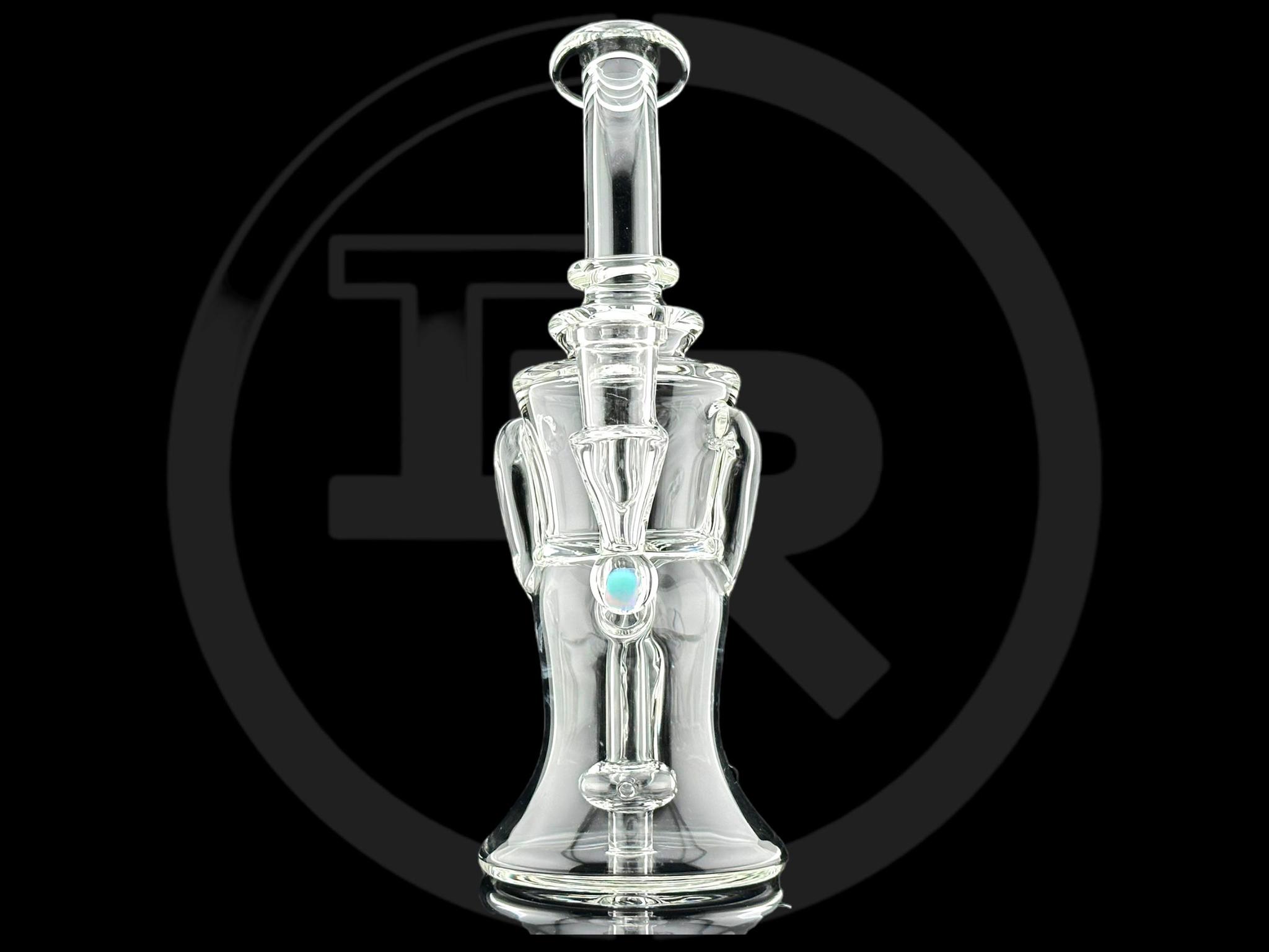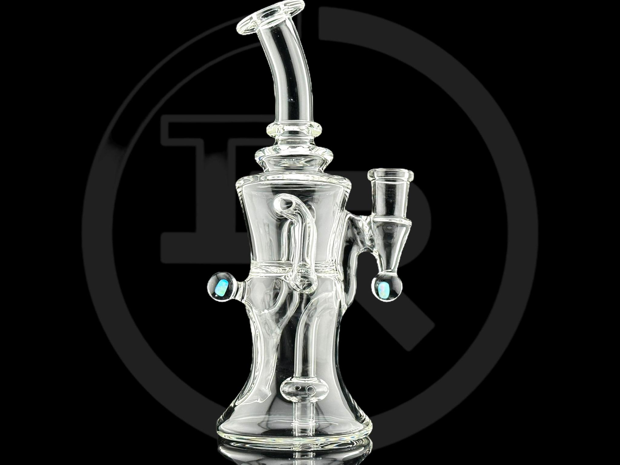 IRIDESCENT GLASS: 8″ CLEAR GILCYCLER WITH DOUBLE OPAL