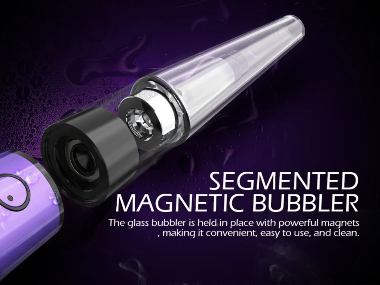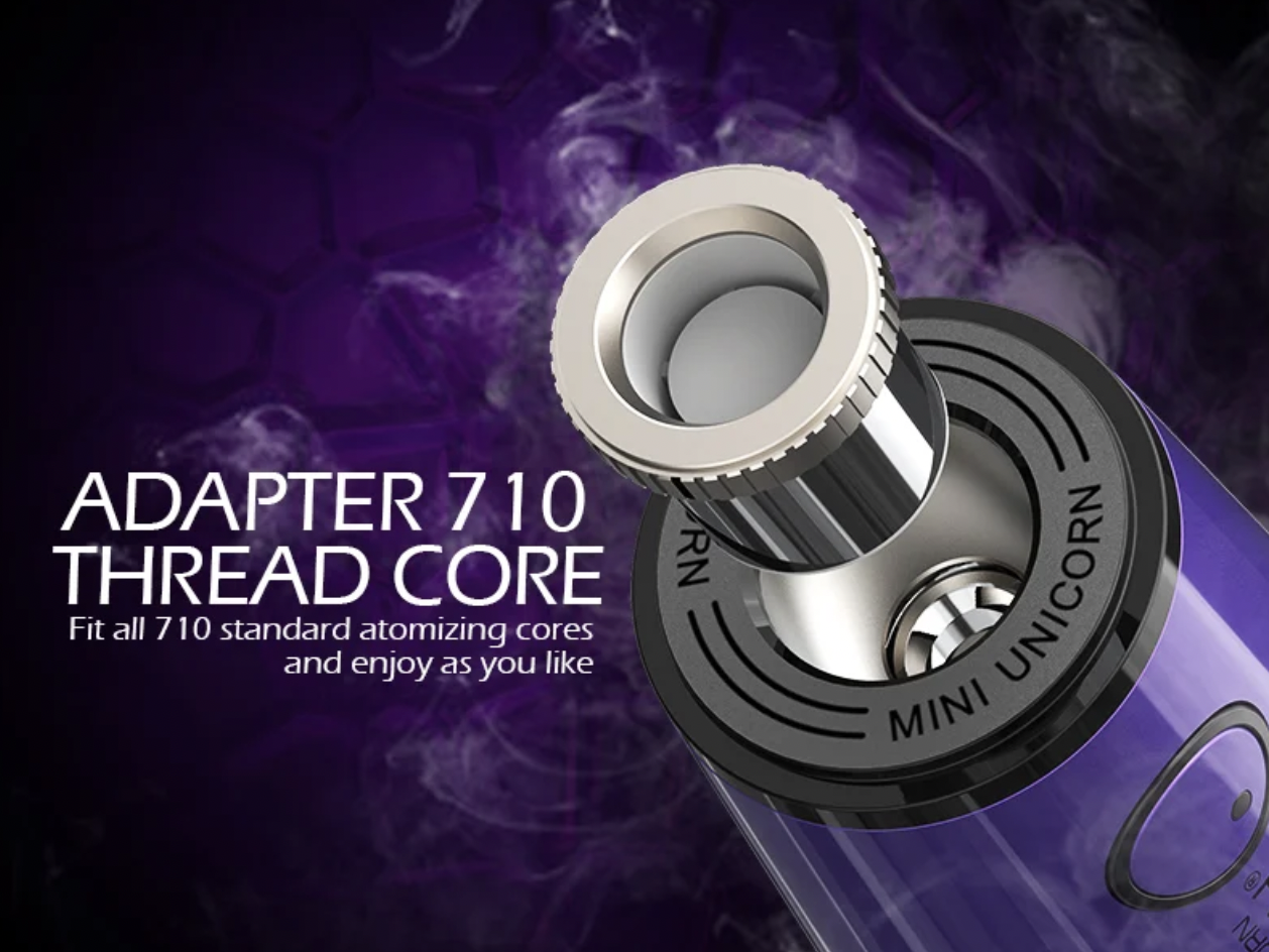 Like the first-generation Unicorn, its little brother, the Unicorn mini, uses powerful magnets to hold the glass over the battery unit. This means it’s easy to lift the glass bubbler off for access to the 710 atomizers when loading the device, but the top stays firmly in place when in use.