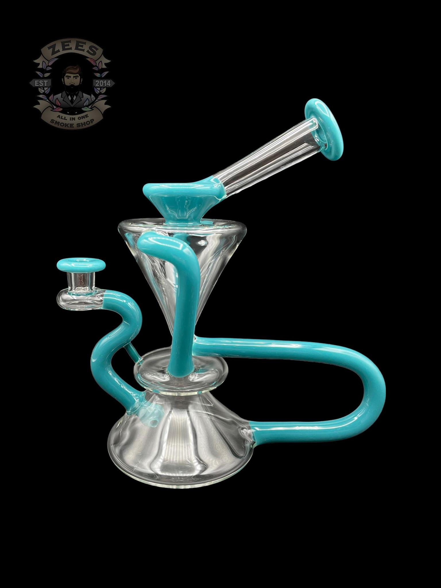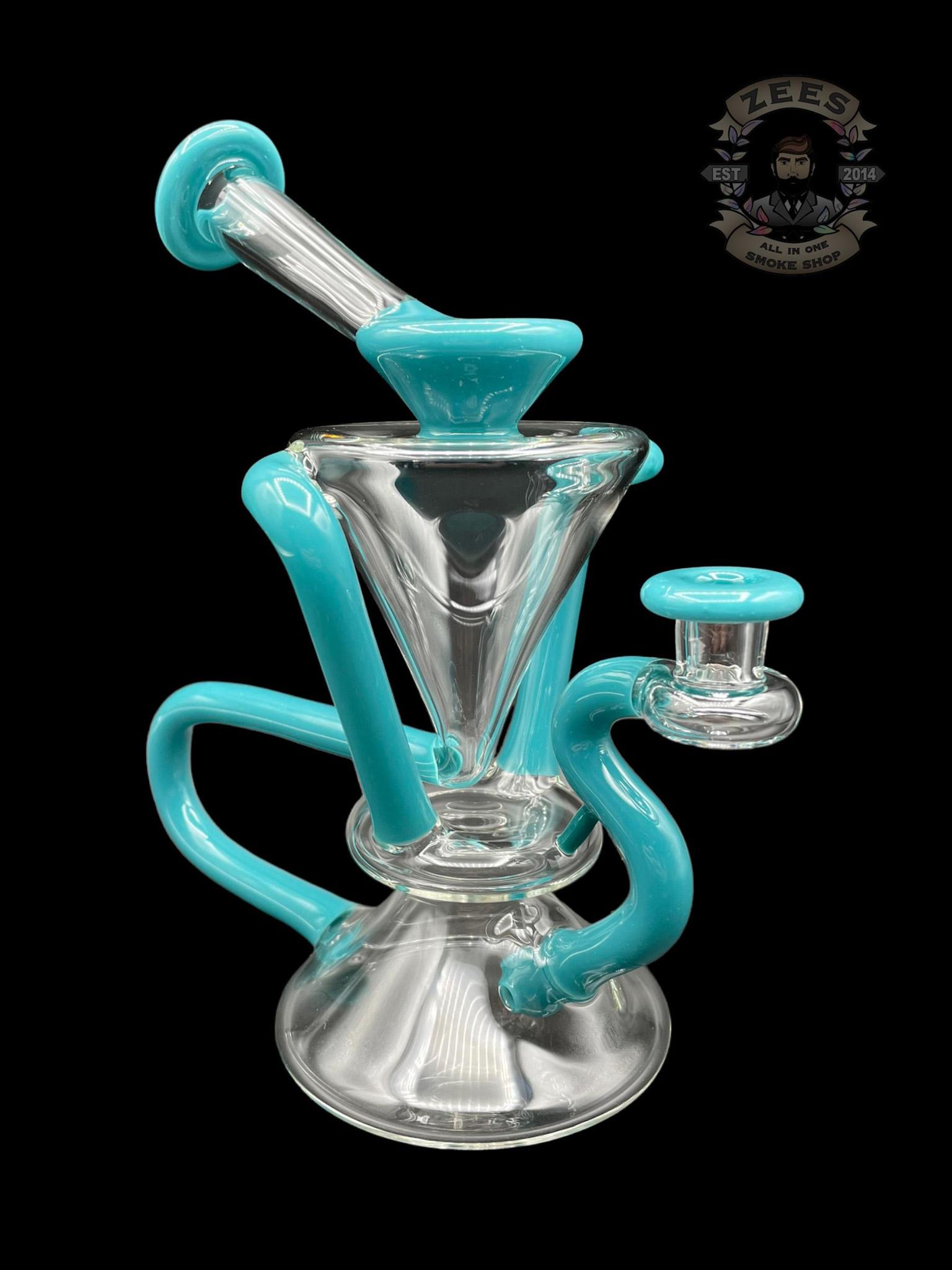 MCGREW GLASS: TURQUOISE DUAL UPTAKE FLOATER RECYCLER
