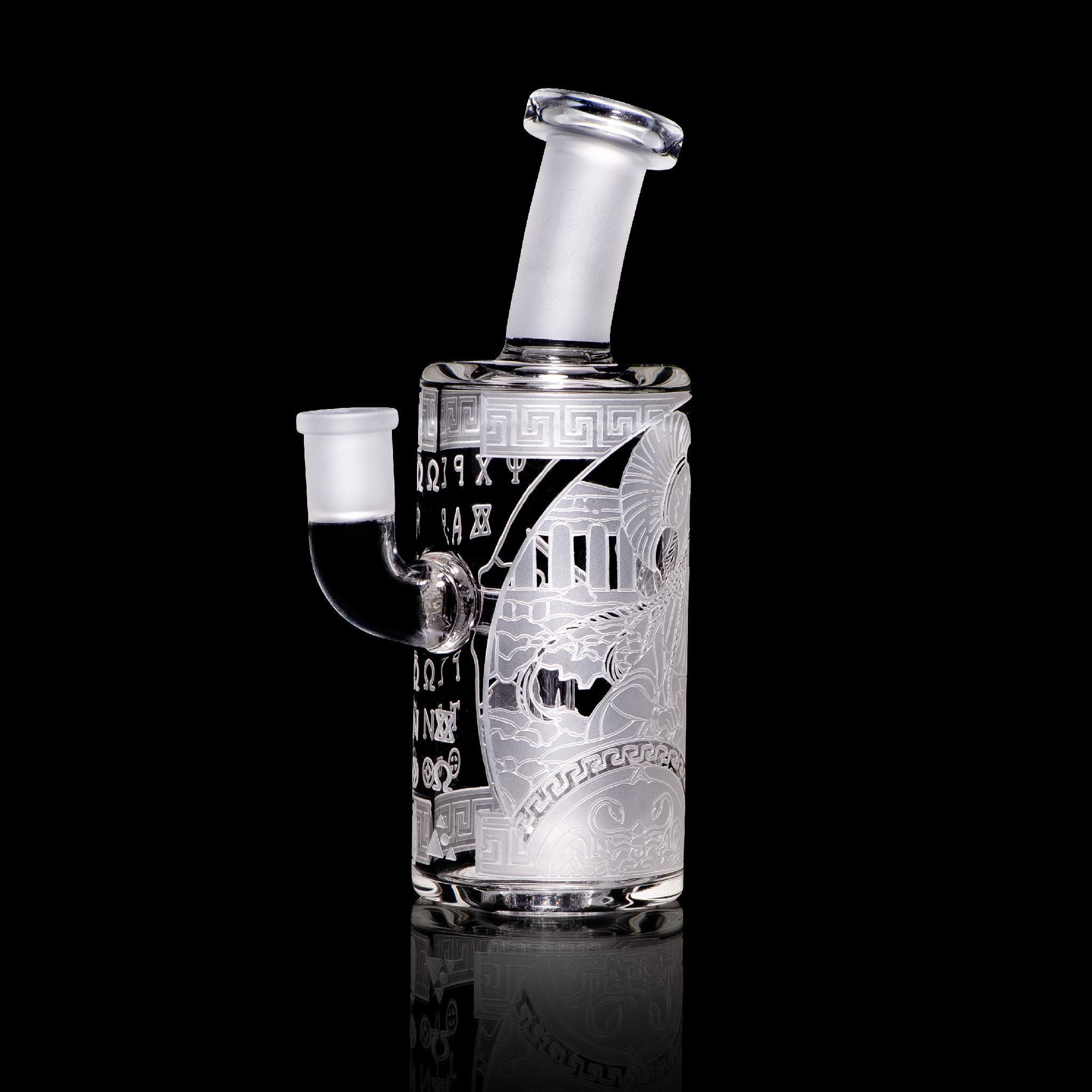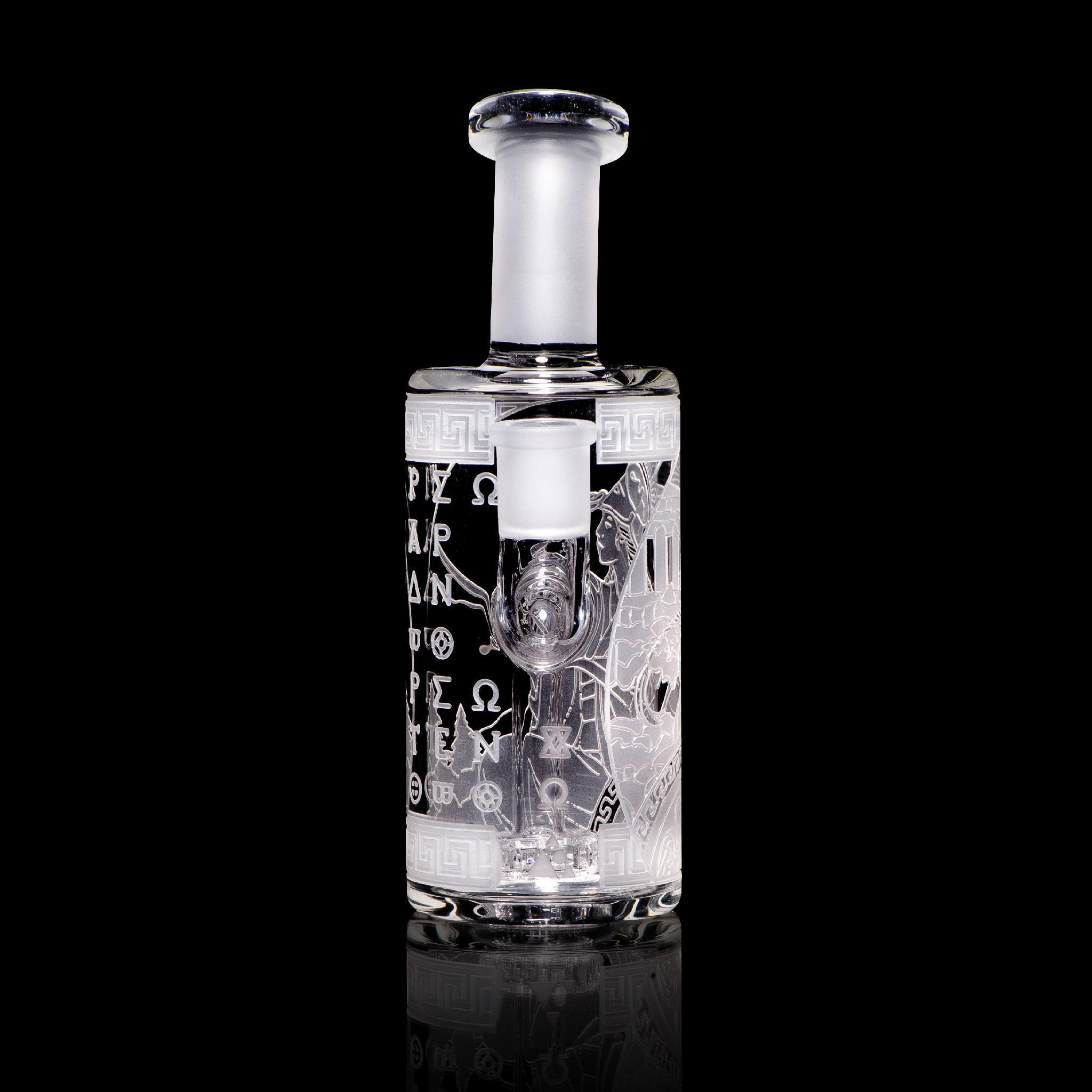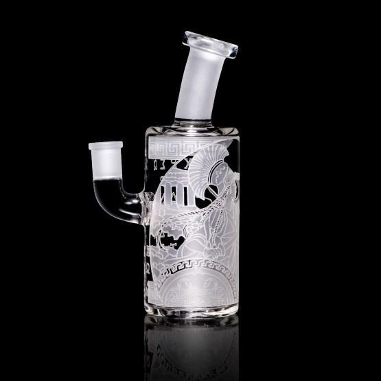 Athena is the Goddess of many things, including wisdom, courage, and inspiration. In this 7” bubbler, Athena points her sword and marches on forth to conquer all that stands in her way. It contains a showerhead perc.