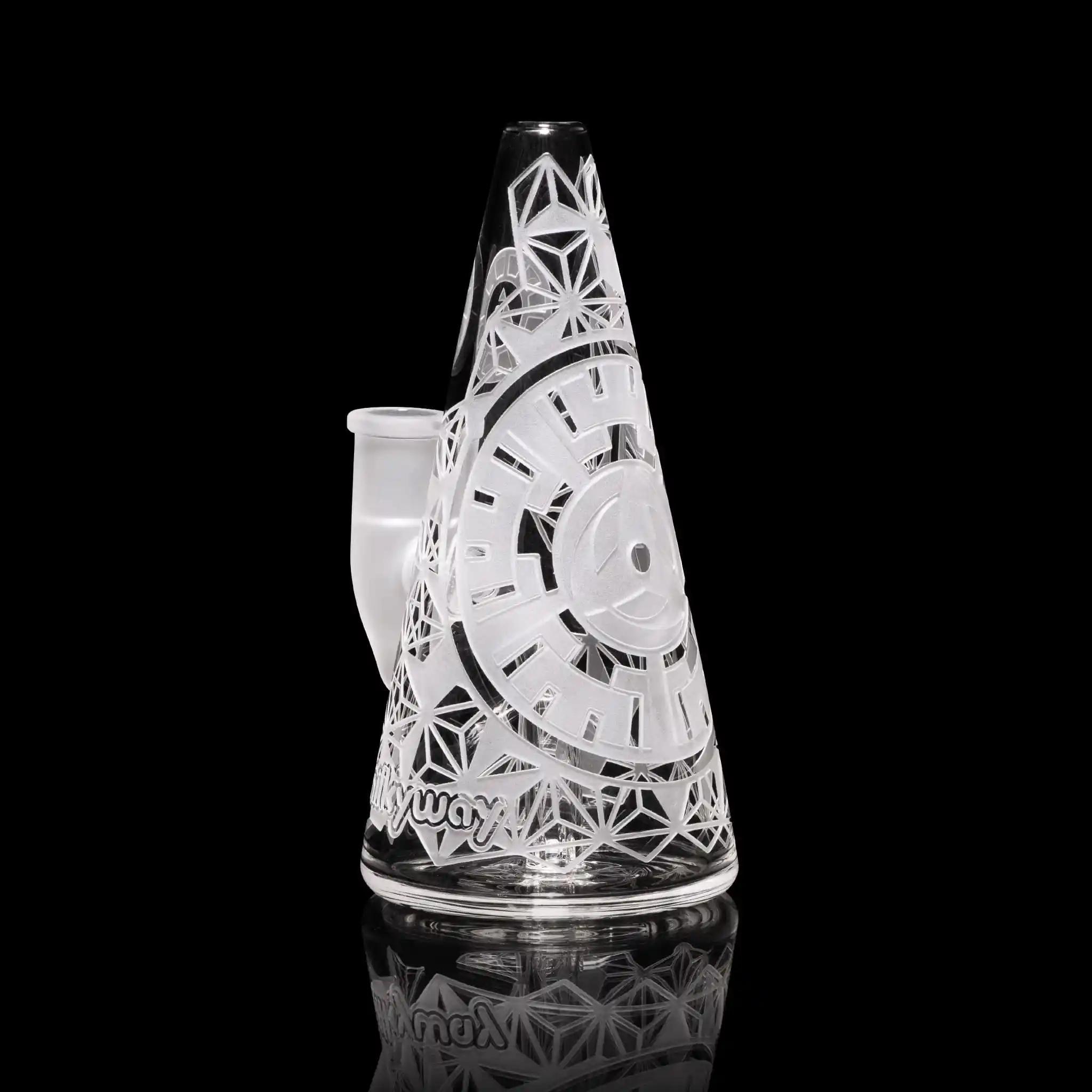 Standing at 6” tall, this mini cone bubbler will hypnotize you. It’s best to not look straight into the hypnotic wheel after using it.. It contains a slit perc.