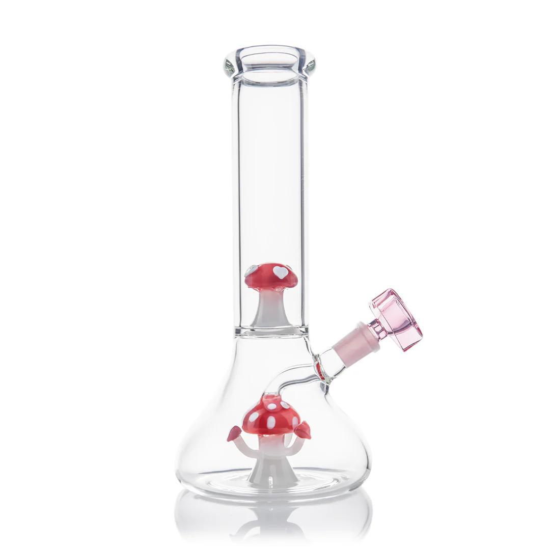 The Lovecap Bong is a showstopper from MJ Arsenal’s 8th Annual Valentine’s Day Collection. This limited-edition piece blends playful charm with unmatched function, featuring a full-color mushroom design and a heart-shaped flower bowl that will light up your sesh—and your heart. The Lovecap specifically includes this intricately crafted heart-shaped flower bowl, adding a romantic and functional touch to your setup. Made from thick borosilicate glass, this handmade water pipe is as durable as it is delightful, delivering smooth, flavorful hits with every use.