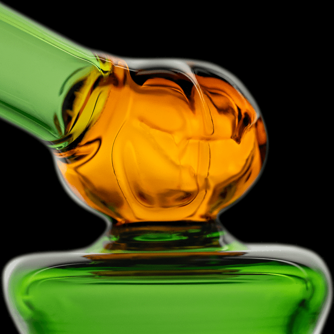 Quickly becoming a mainstay in our MJA smoke circles, this friendly Goblin is here to crank your terps like never before. With the famed, “Blunt-O-Lantern” lower section and base connected puck perc, the power within this mini dab rig is recognized instantly. Light energy, dark energy? Who cares!? This undead beast rips!