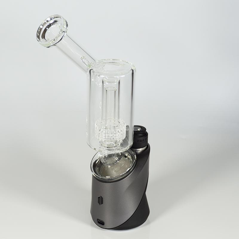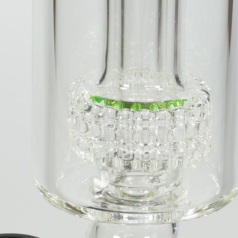 This Puffco Peak glass attachment is a hand-blown borosilicate work of art by Monark Glass. Features a matrix percolation water filtration system, for a smooth hit each time. Also includes custom color accents on lip and perc.