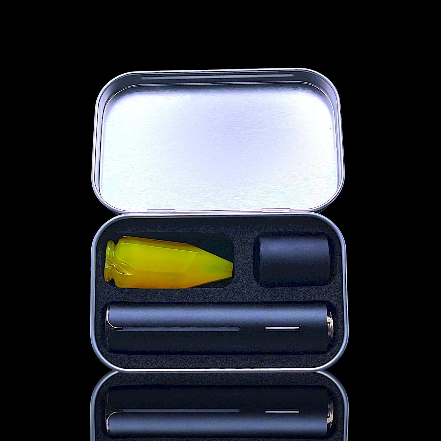 The Travel Case keeps your stash organized. Featuring a ridged hard aluminum exterior with a magnetic lid closure and soft silicone inside to reduce rattling, the Travel Case has room for a Pivot + Hot Knife, up to 3 jars, cotton swabs, a covered section for trash, and anything else you might need.