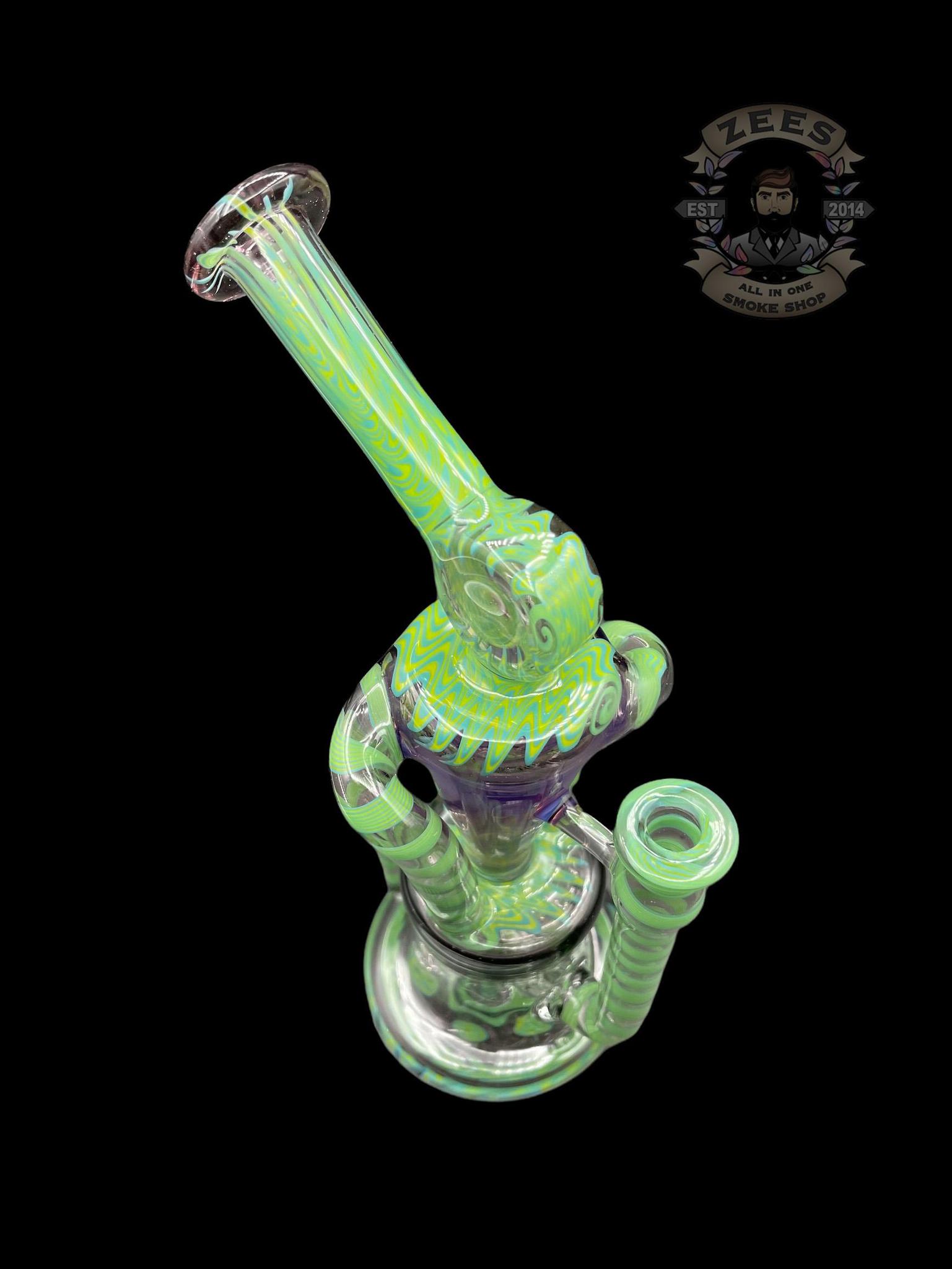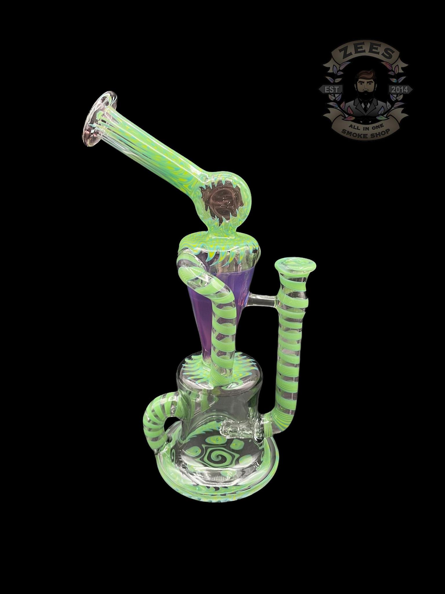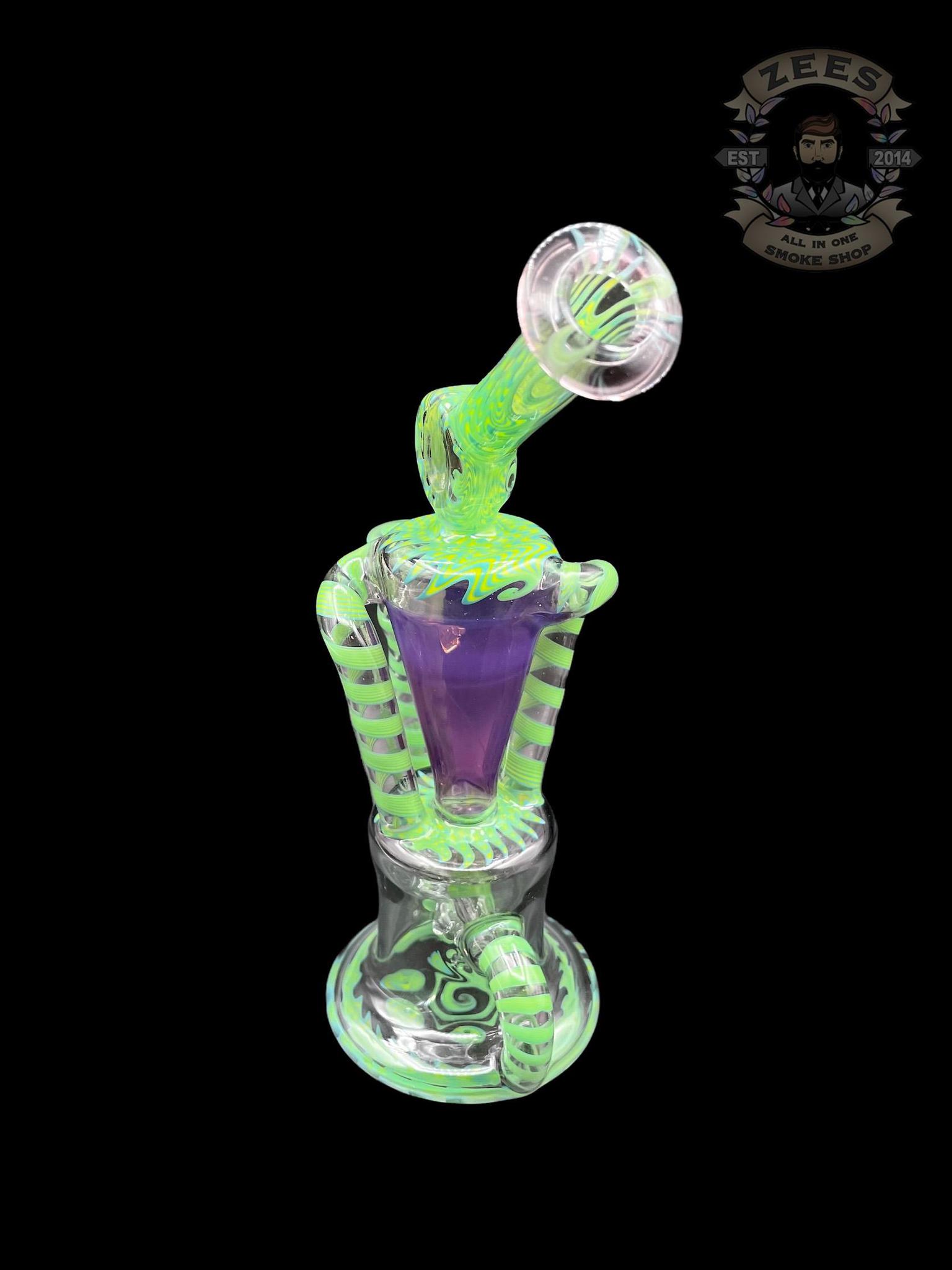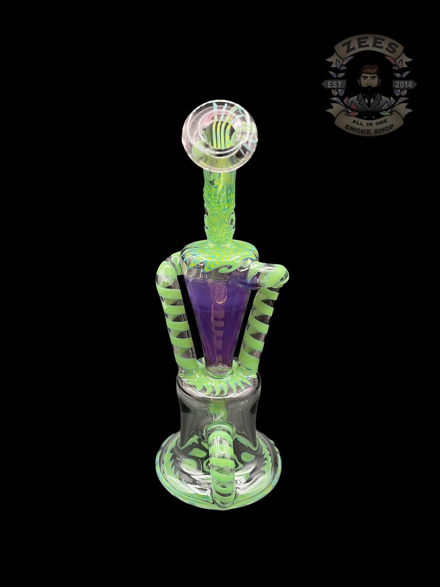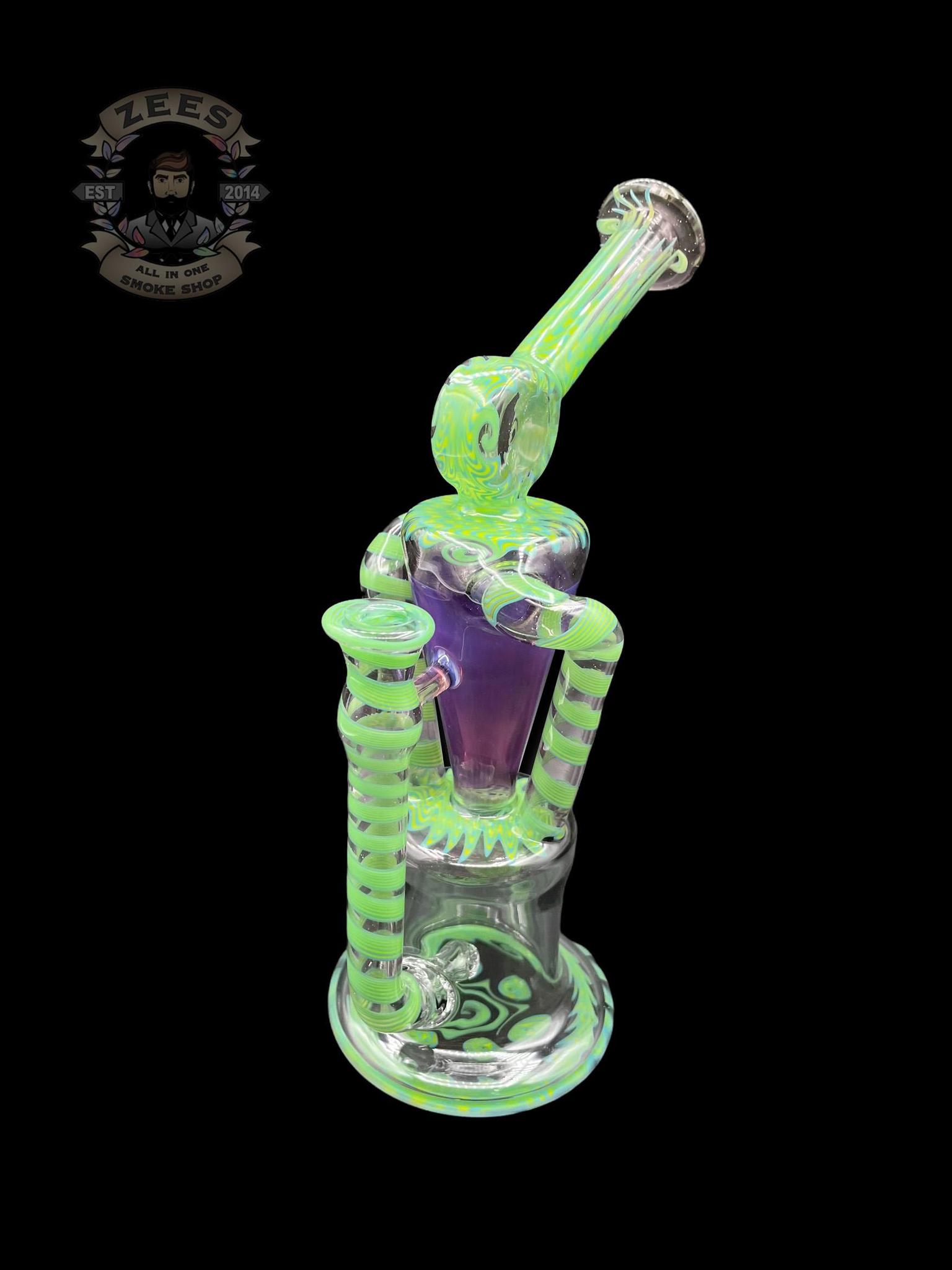 PHANTOM GLASS: LEAF GREEN AND PURPLE LOLLIPOP WIG WAG DUAL UPTAKE RECYCLER