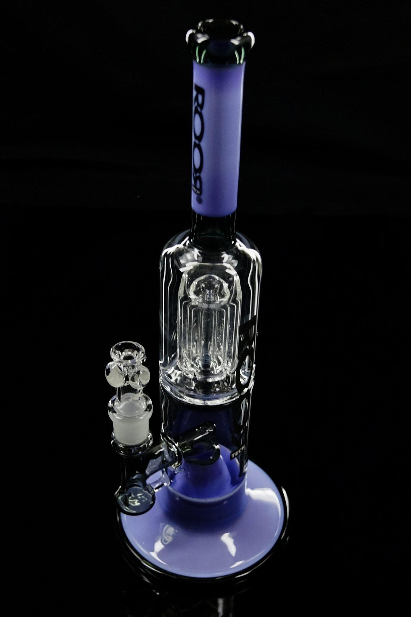Made from 60mm x 5mm German Duran Schott glass for this bubbler body and 26mm x 4mm mouthpiece and neck. Percolation is doubled up in this bubbler with a mini ROOR® Tech barrel percolator located at the upper chamber with the lower percolator similar to the original ROOR® Beaker body with slits on the bottom for maximum airflow and percolation.