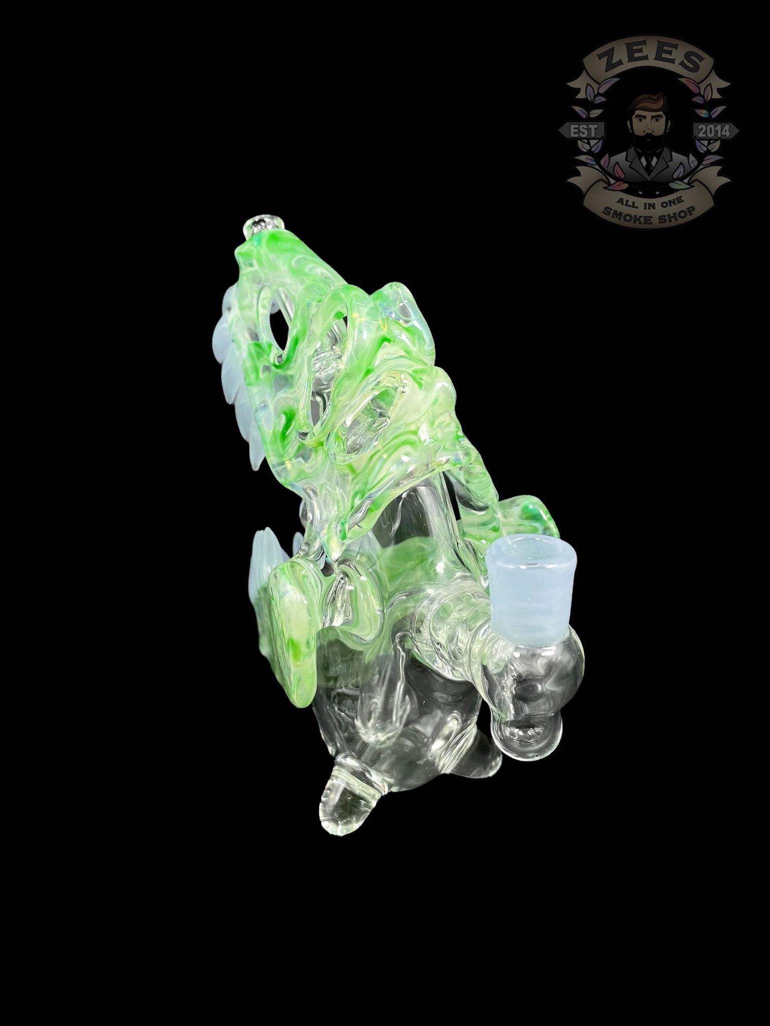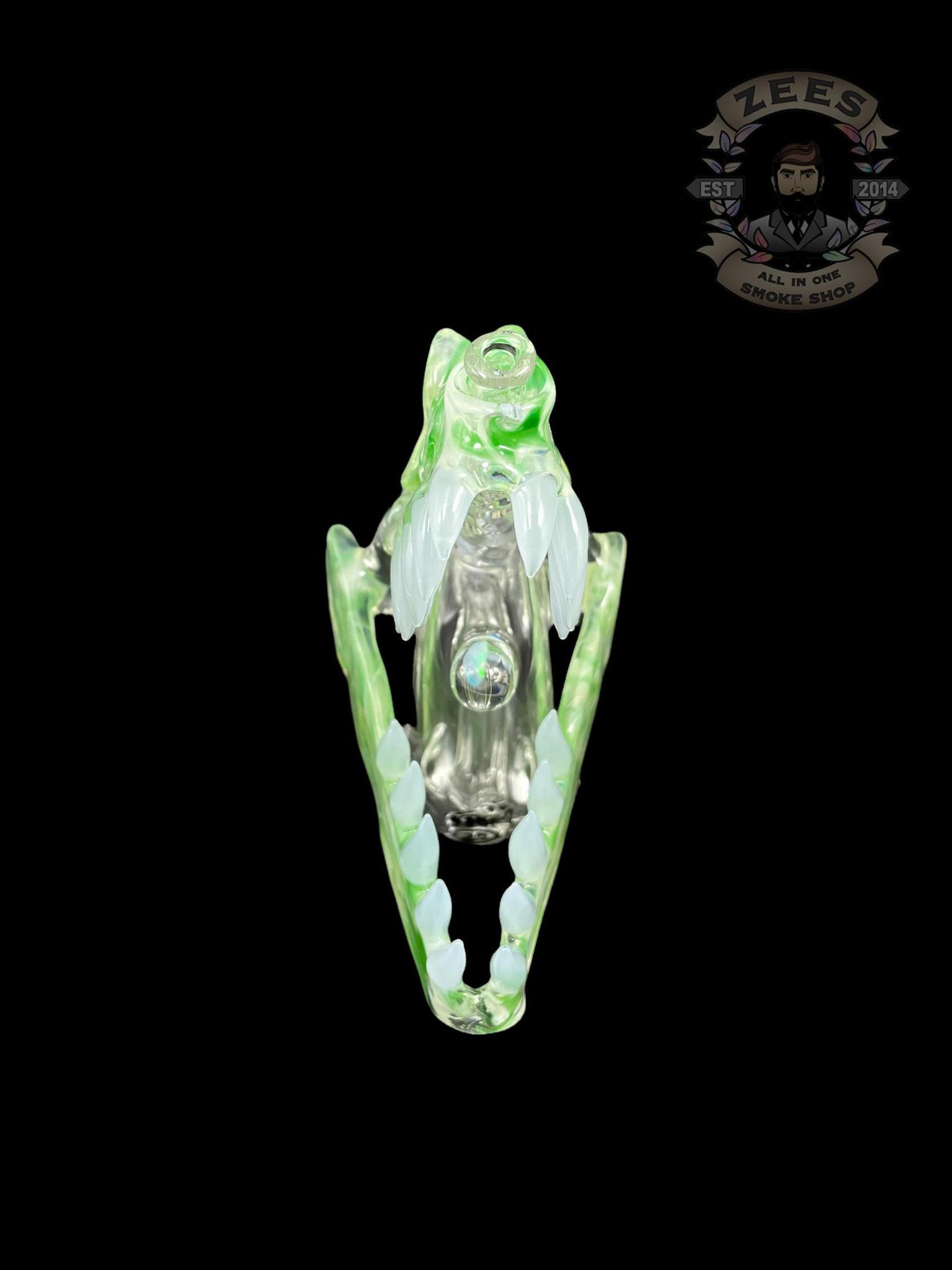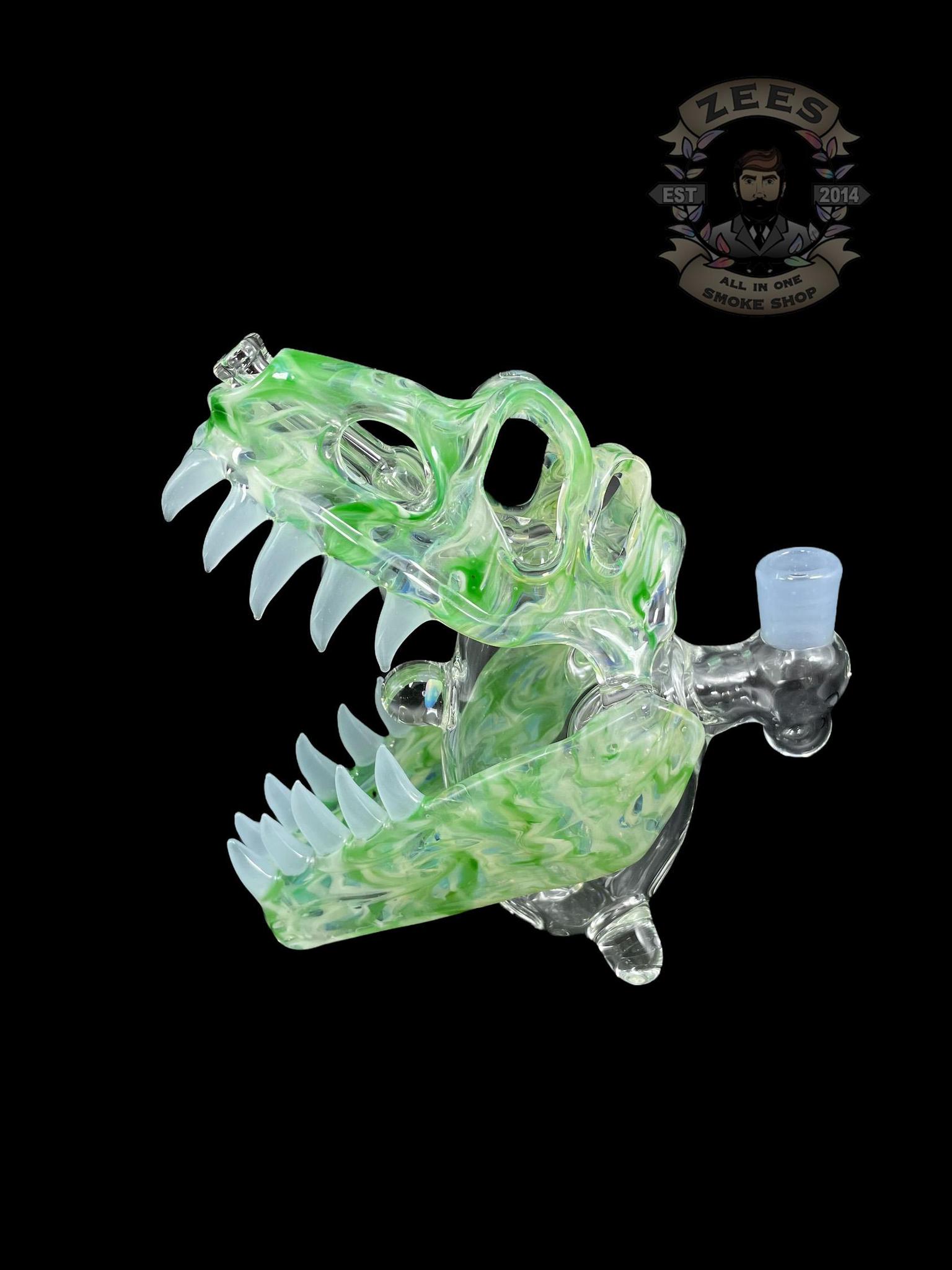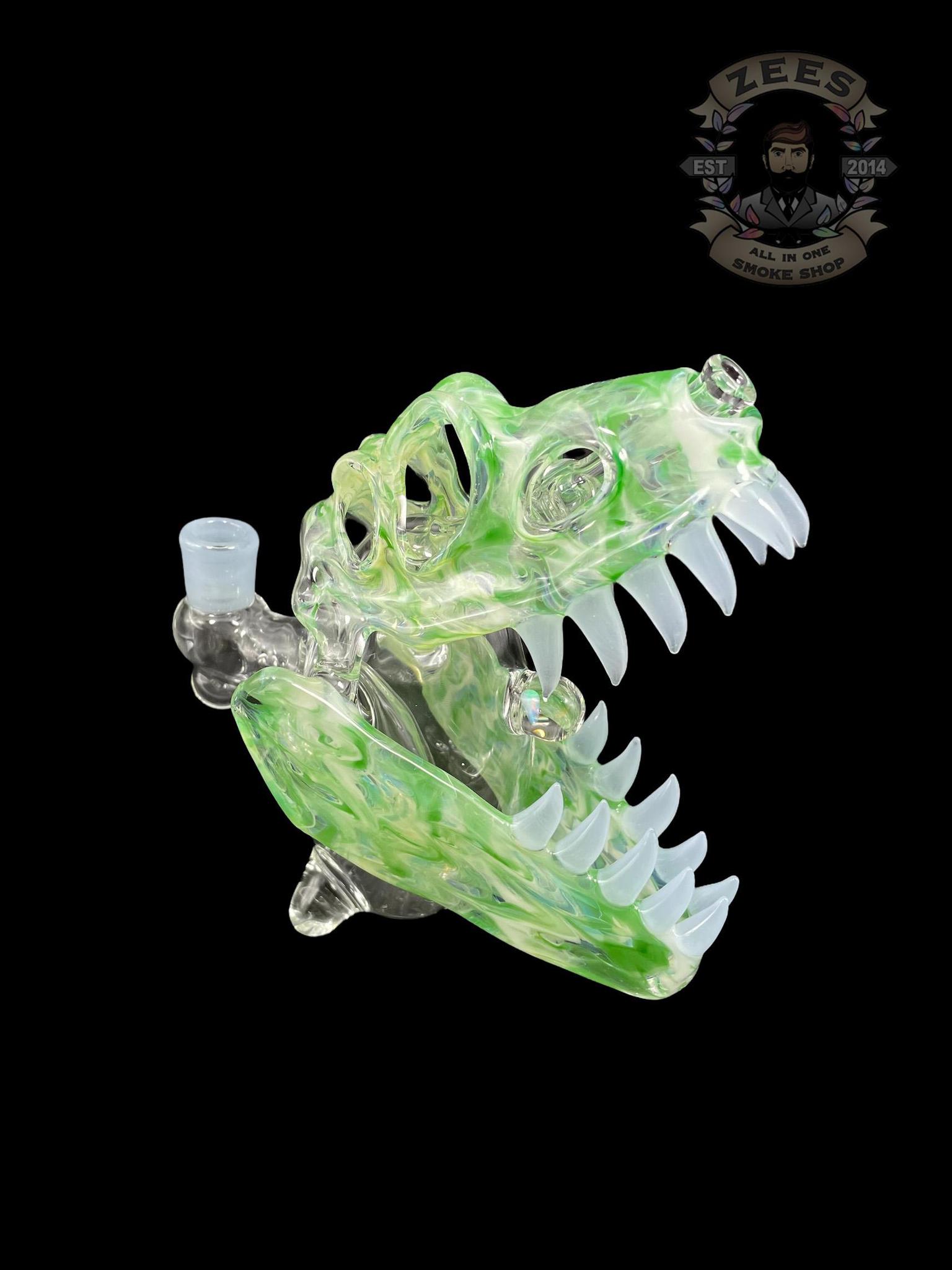 SLURM SNOB GLASS: GREEN W/ FROSTY WHITE TEETH DINO SKULL RIG