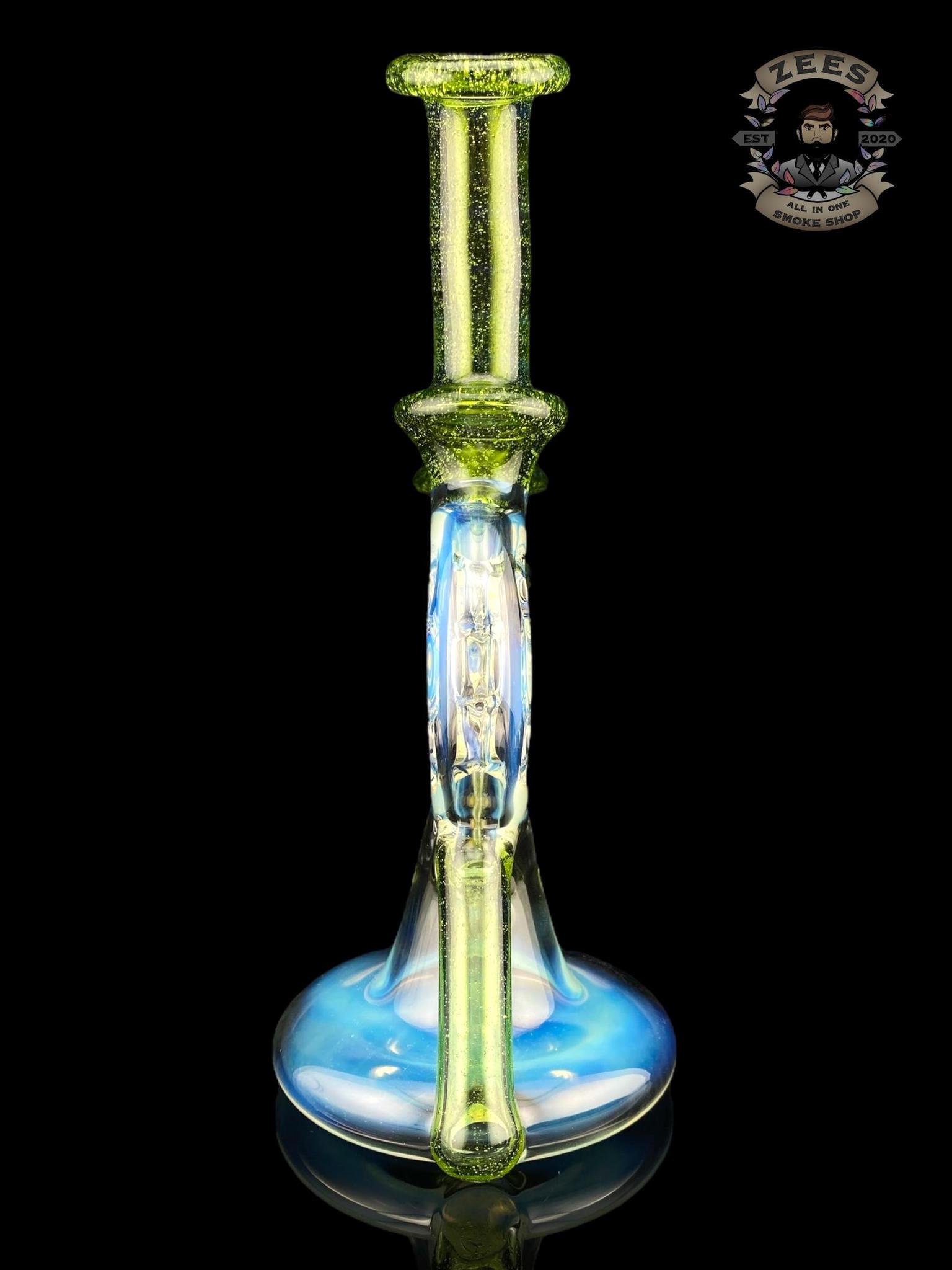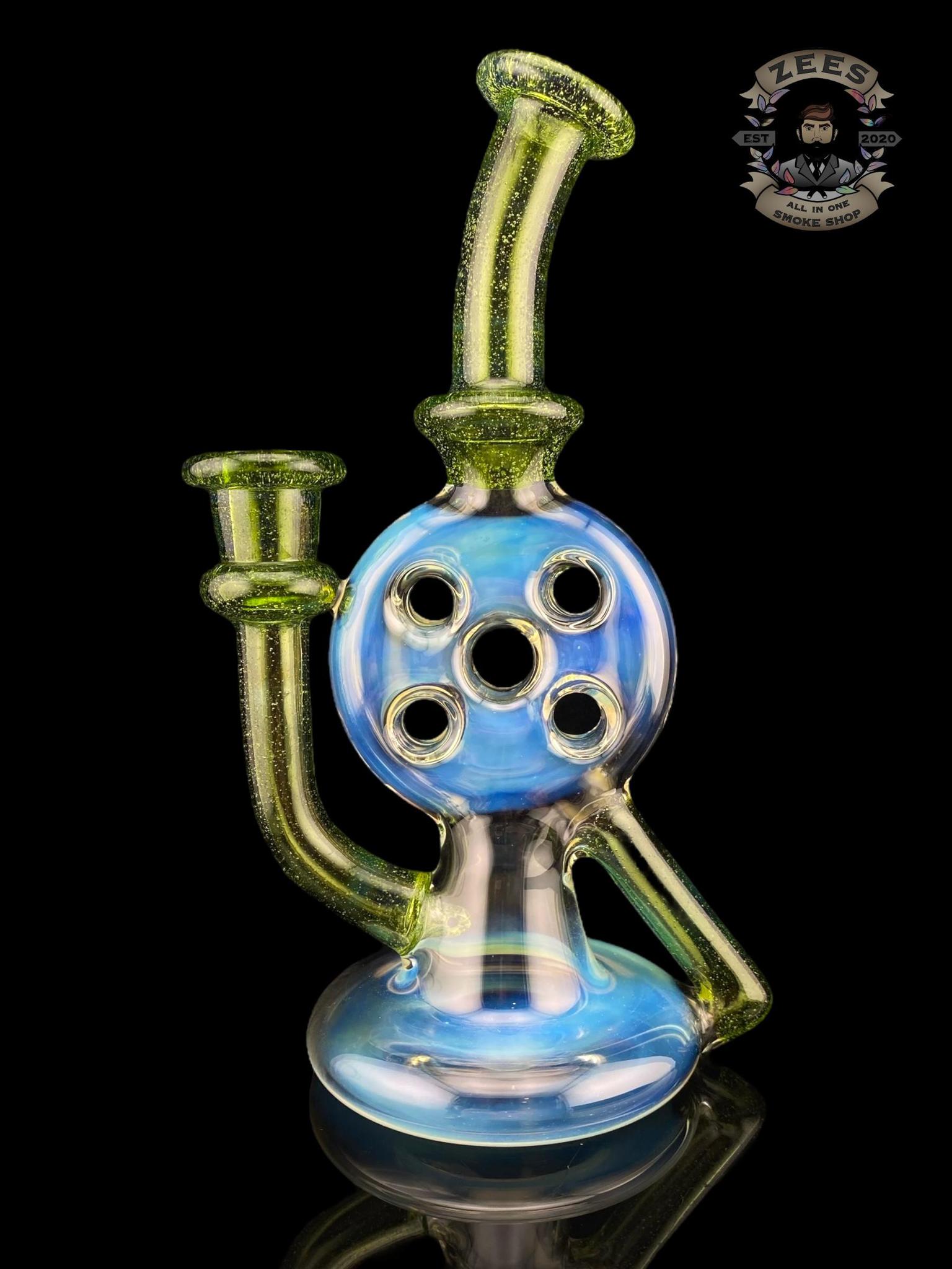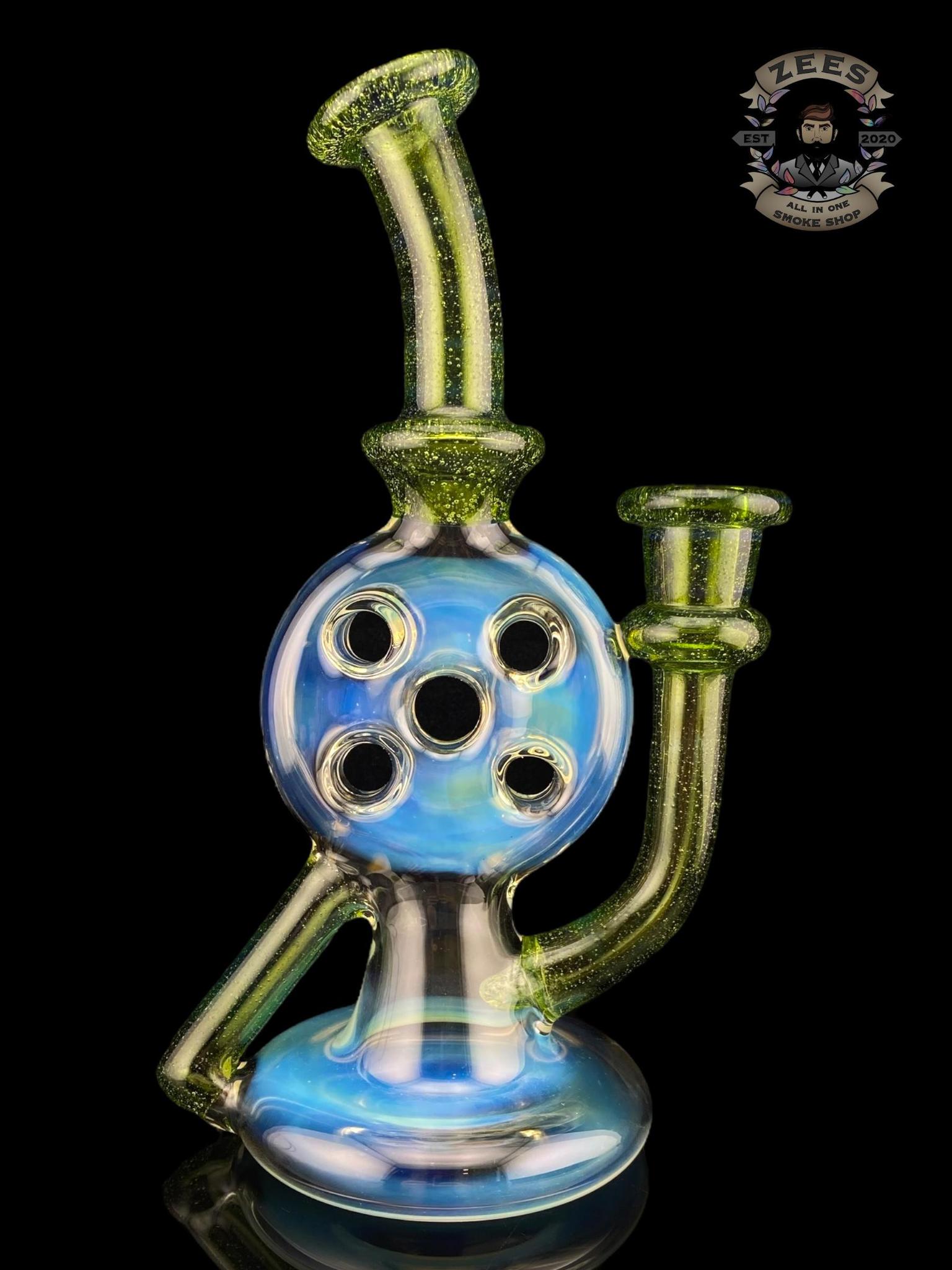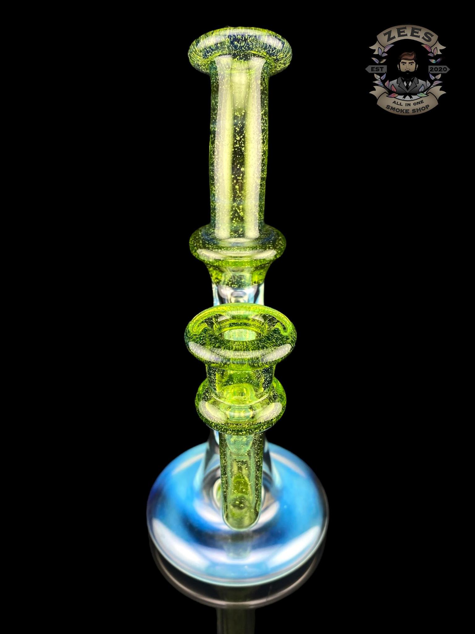 UZZI GLASS: DUMPY RECYCLER #2 SILVER FUME X GREEN STARDUST